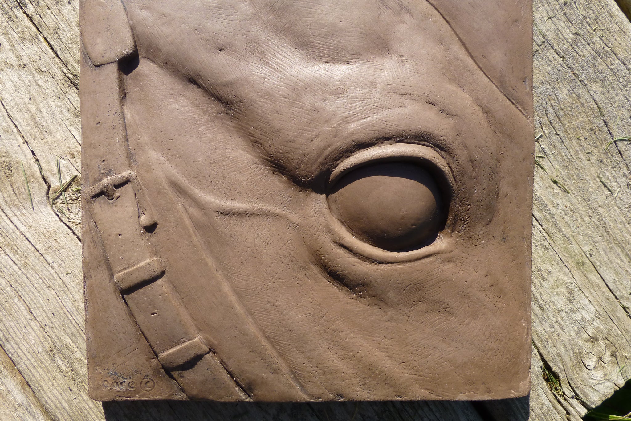 Super realistic portrait of the eye of a horse. Sensitive highly detailed depiction in fine concrete. Suitable for installation or display indoors or out. A beautiful gift for horse rider or horse lover. Would look great installed as fireplace surround