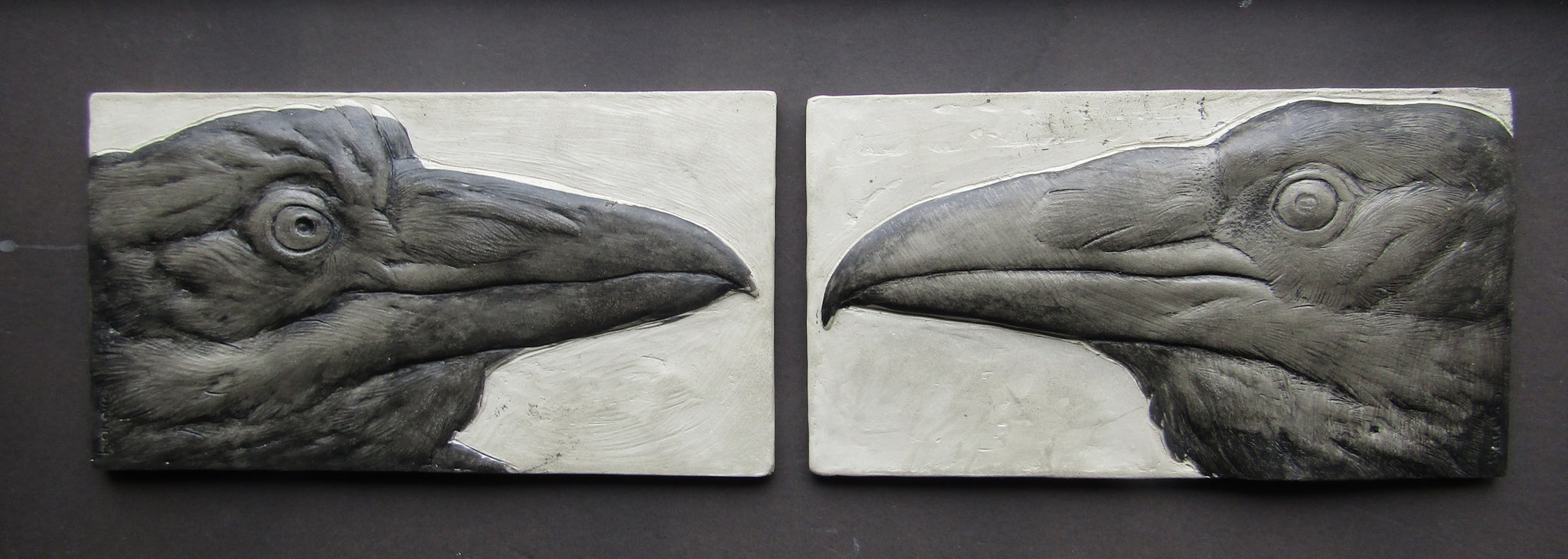 Raven Pair Concrete 3d Relief Art Tiles