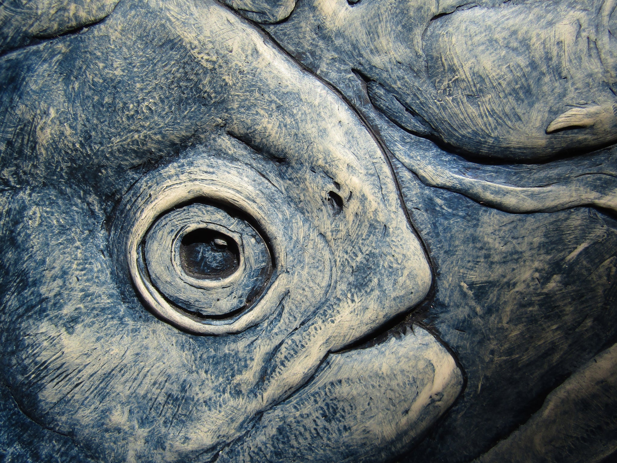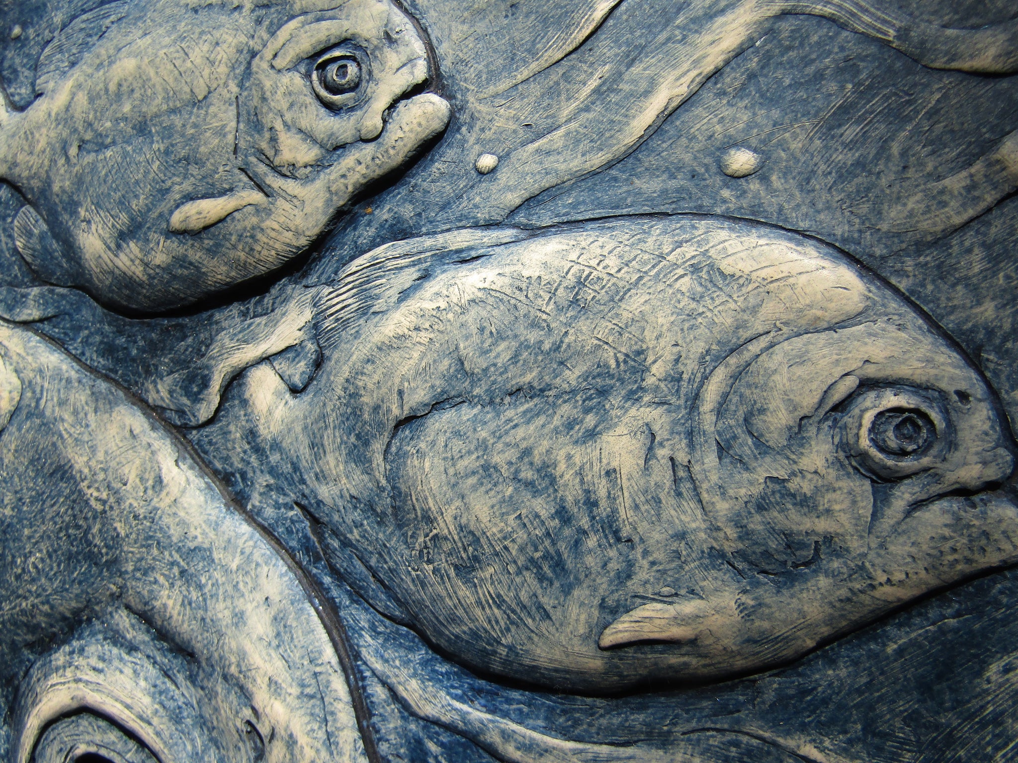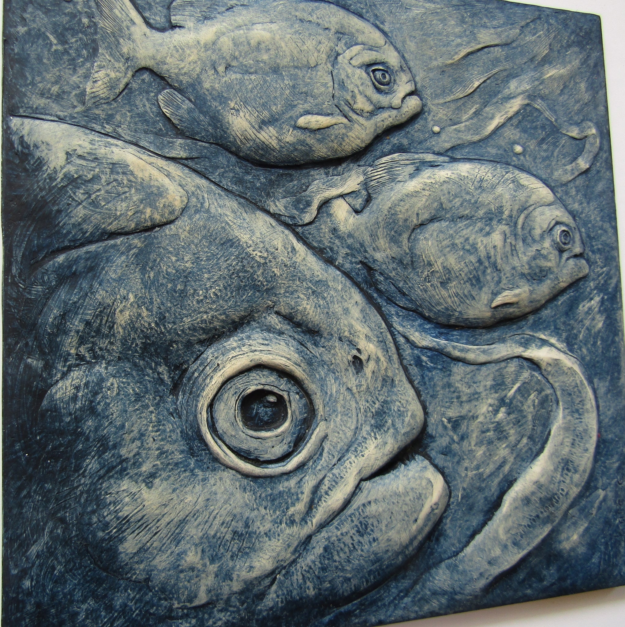 Three Piranha Fish prowl a reedy river . I entitled this piece 'Three Amigos' somewhat tongue in cheek but it seems appropriate.