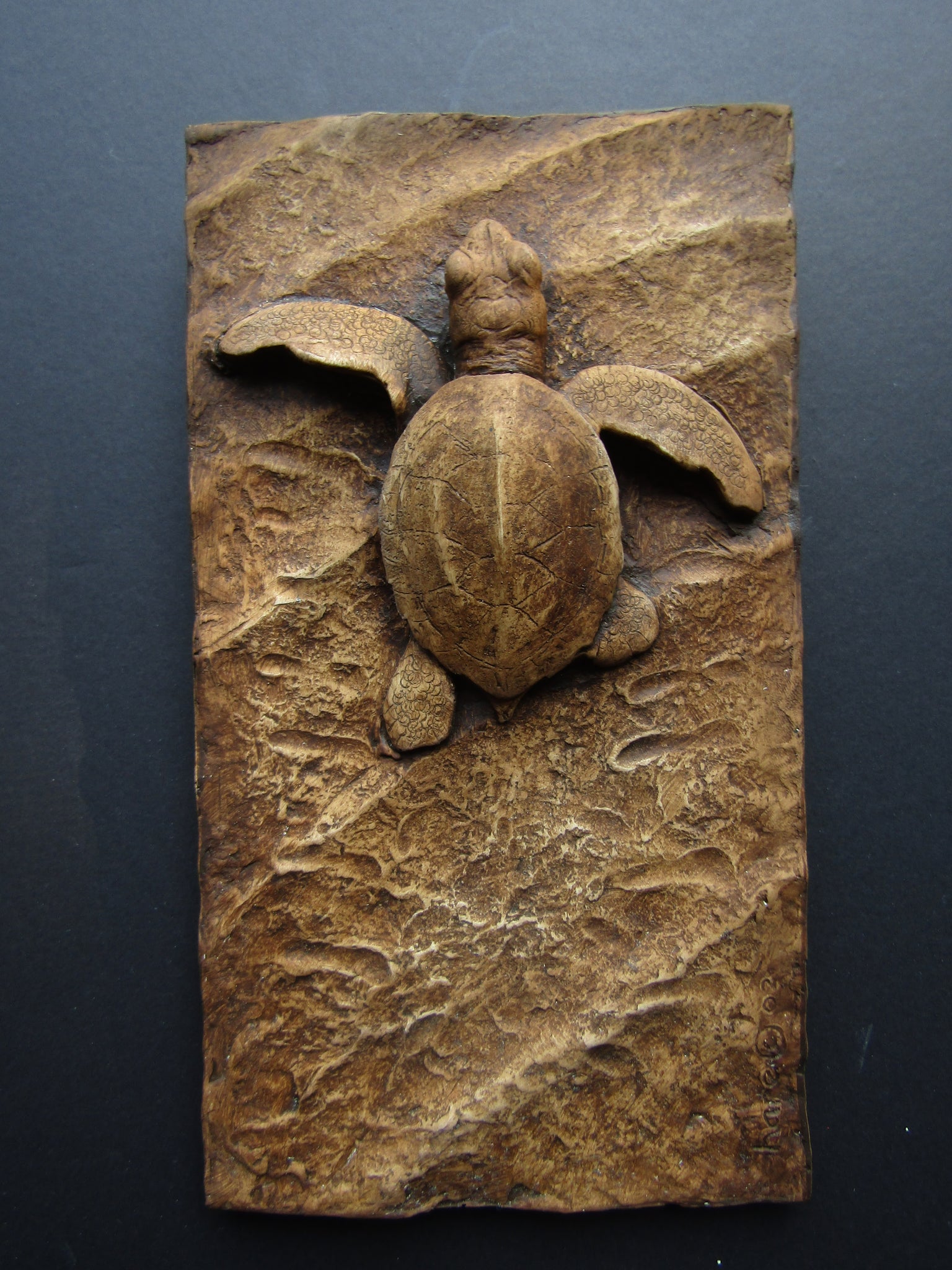 Hand cast and colored fine waterproof cement, suitable for display or installation indoors or out.