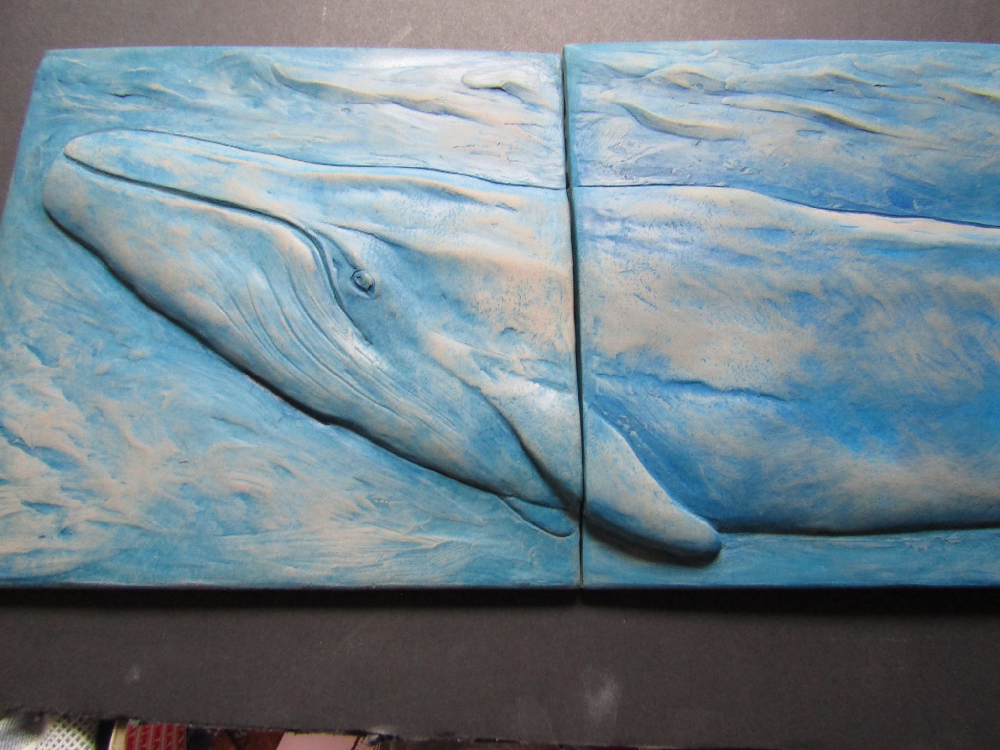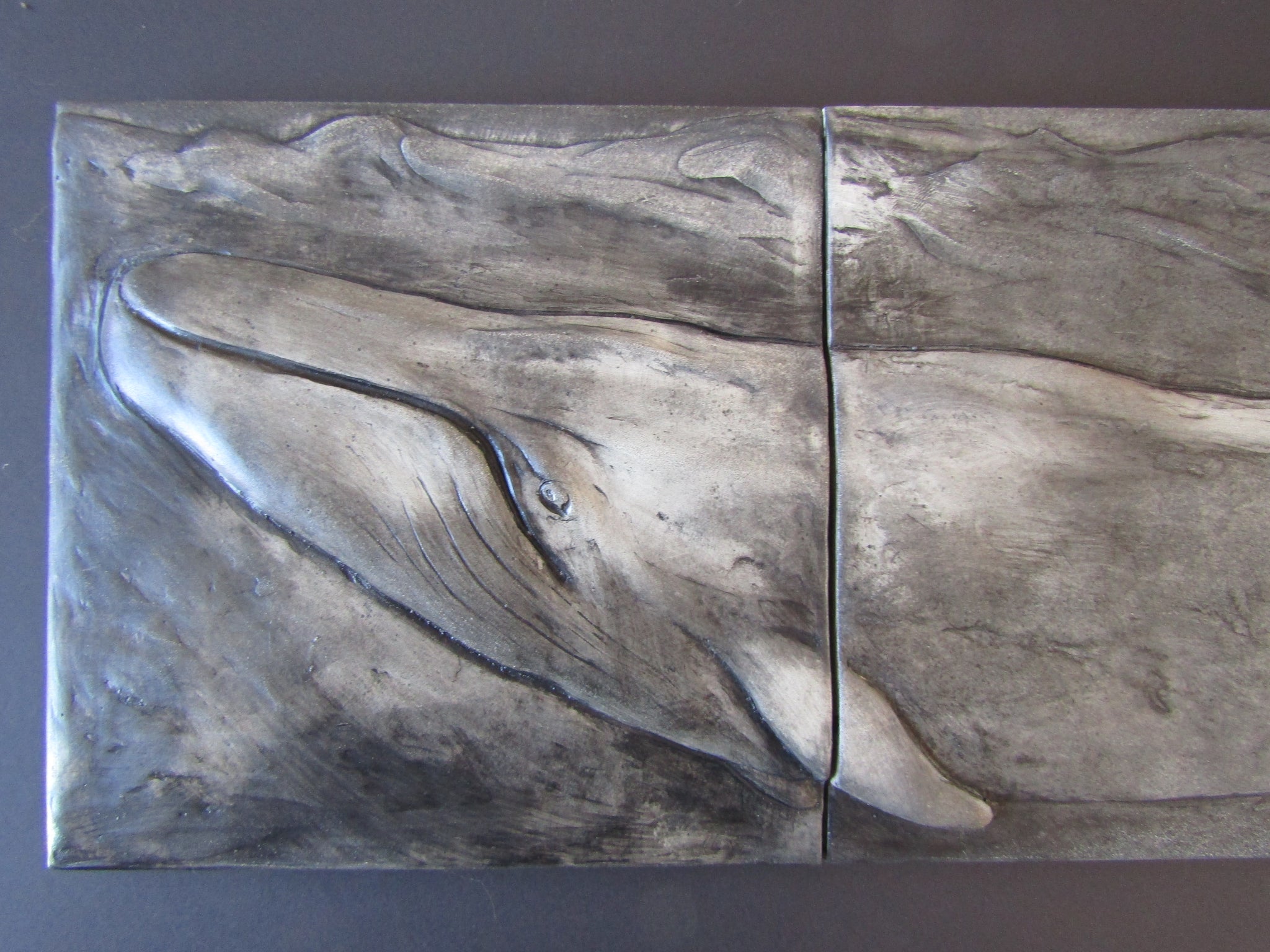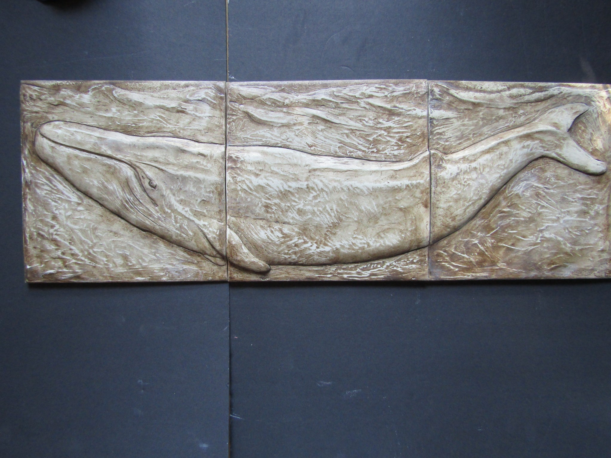 Blue Whale Concrete Sculpture Handmade Art Tile Limited Edition